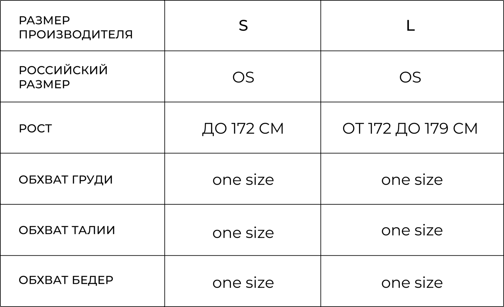 Таблица поможет выбрать наиболее точный размер. Если у вас останутся какие-то вопросы, наши менеджеры с радостью вас проконсультируют.